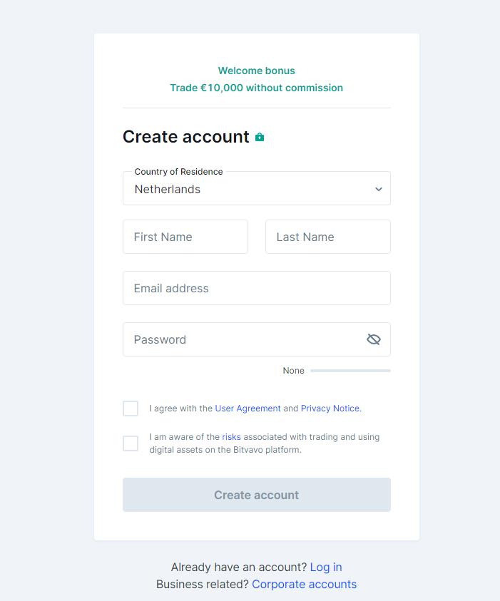 Lees en accepteer de algemene voorwaarden en het privacybeleid van Bitvavo.