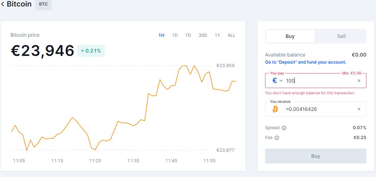 Ga naar de “Markten” sectie om te zien welke cryptocurrencies beschikbaar zijn om te kopen.
